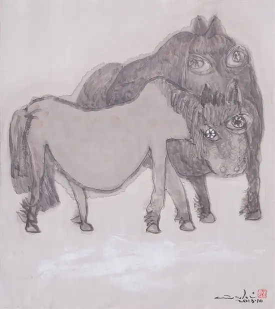 马 宣纸水墨 50x50 cm