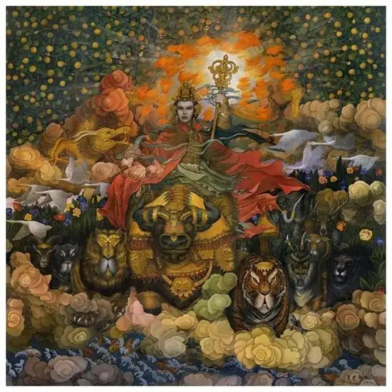 如果这时需要配乐,那就演奏古琴曲《十面埋伏》吧,那就演奏耳聋的贝多芬的《英雄交响曲》和《命运交响曲》吧,那就演奏柴可夫斯基的《悲怆交响曲》吧!斗牛的使命就是“斗”,“斗”是他的灵魂,而最终让利刃刺穿心脏、在看客的欢呼中喋血沙场则是他无法逃脱的宿命,由此,牛完成了一个悲壮的、诗意的轮回。关玉良画斗牛,但斗牛士决不出现在画面,也不见刀光剑影和抖动的红布,但却更让人感觉到命运的不测,无踪无迹,却又无处不在、如影随形。人能逃脱命运吗?关玉良的牛让我想起了一个被用滥的词——牺牲。其实,牺牲的本义是祭品,两个字都从“牛”,就是说,重要祭祀活动都是杀牛来祭奠。牺牲本是名词,后引申为动词,指为实现一定的道德理想或道德目的,甘愿抛弃自己的利益甚至生命。如此,牛就有了某些神性,可以看作是一种圣物,具有了宗教色彩。西班牙斗牛就源起于为祈祷畜牧业和农业的丰收而向神灵供祭杀死的牛。死去的牛总会让人联想到“烈士”,成为某种“主义”或“精神”的祭品。所以,牛的奋争和死亡,悲剧色彩更浓。以牛这个题材作画,就具有了天然悲剧因素和某种宗教色彩。