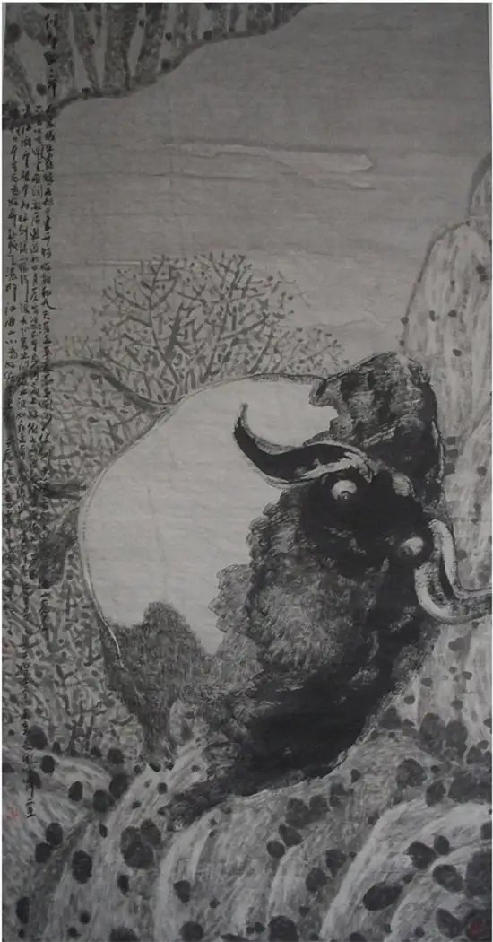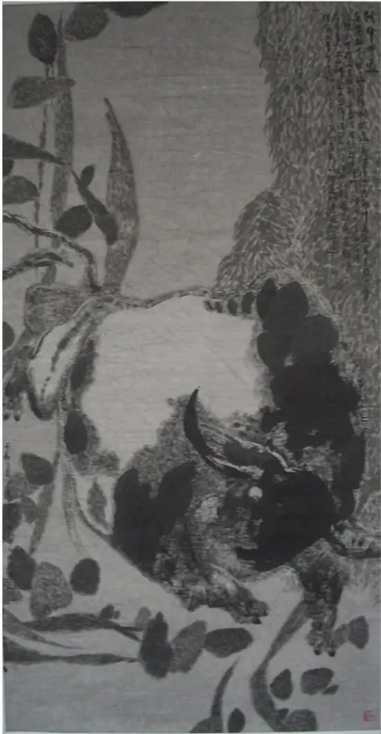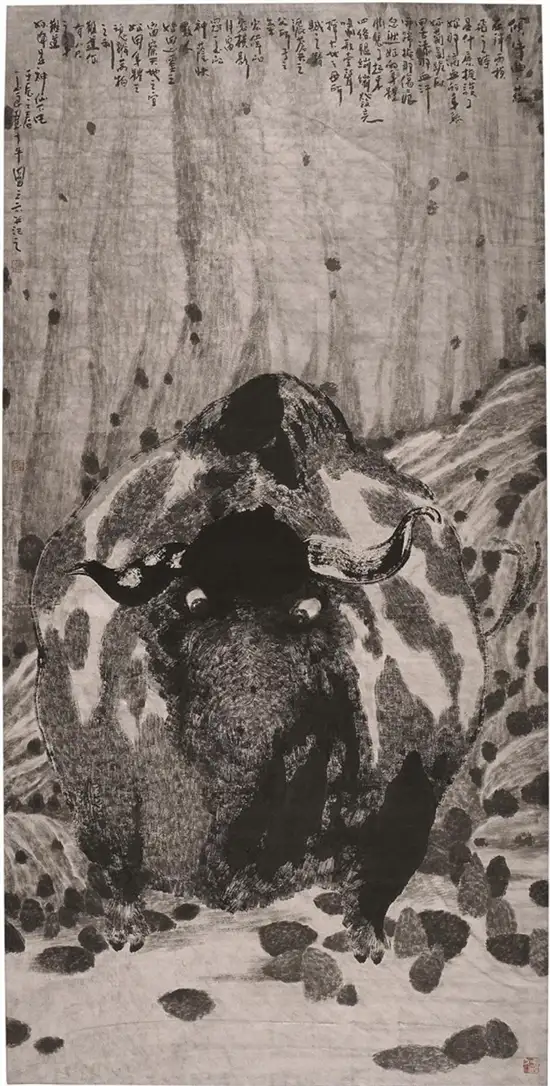 中国牛 宣纸水墨 136×68cm 2014年