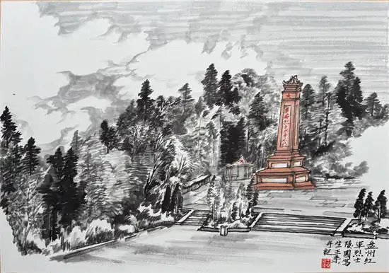 九庄烈士陵园写生,纸本,2024年,65x45cm