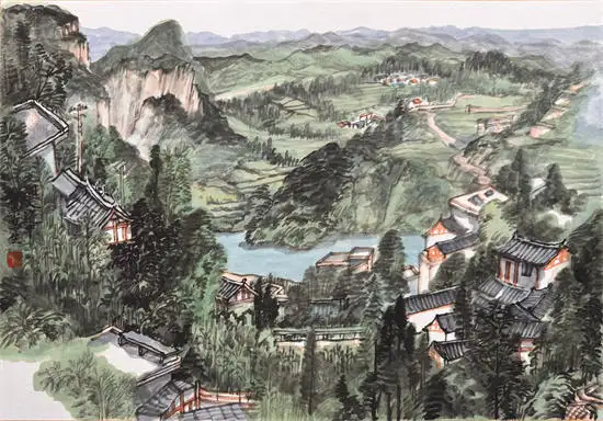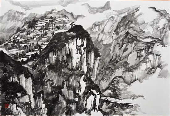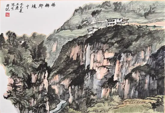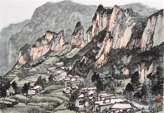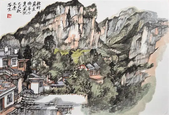 王乘的艺术实践,是一场与自然对话的永恒修行。他每年春秋两季必携学生深入黔地苗乡、太行绝壁、江南水巷,以千余幅写生作品为证,将“师法自然”推向极致。靖边丹霞的苍茫、六车河峡谷的奇崛、娘娘山湿地的温润,皆在其笔下化为墨色交响。他主张“写生是笔墨与自然的博弈”,拒绝程式化的摹写,而是以“诗情画意”重构山水意象,如《发哈村的清晨》中,水墨设色交融,晨曦与炊烟共舞,既见宋画的静谧,又显当代的鲜活。
