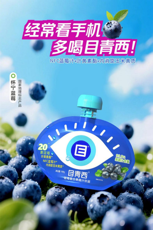 基于优质原料,目青西确立了“简单、食养、美味、惊艳”的产品理念,怀揣“让少儿眼里有光”的初心使命,精准聚焦中高端健康饮品市场,深耕护眼品类功能性饮品。一句“经常看手机,多喝目青西”的口号,精准戳中当代人高频用眼的日常痛点,成为品牌与消费者高效沟通的核心记忆点,也让护眼理念更易融入日常生活。