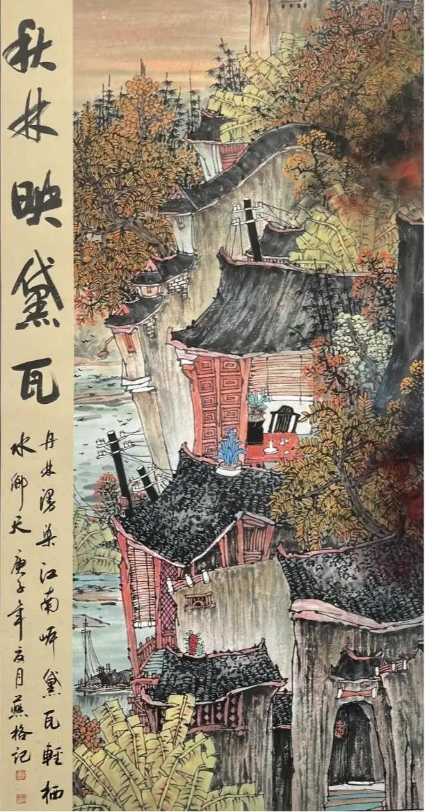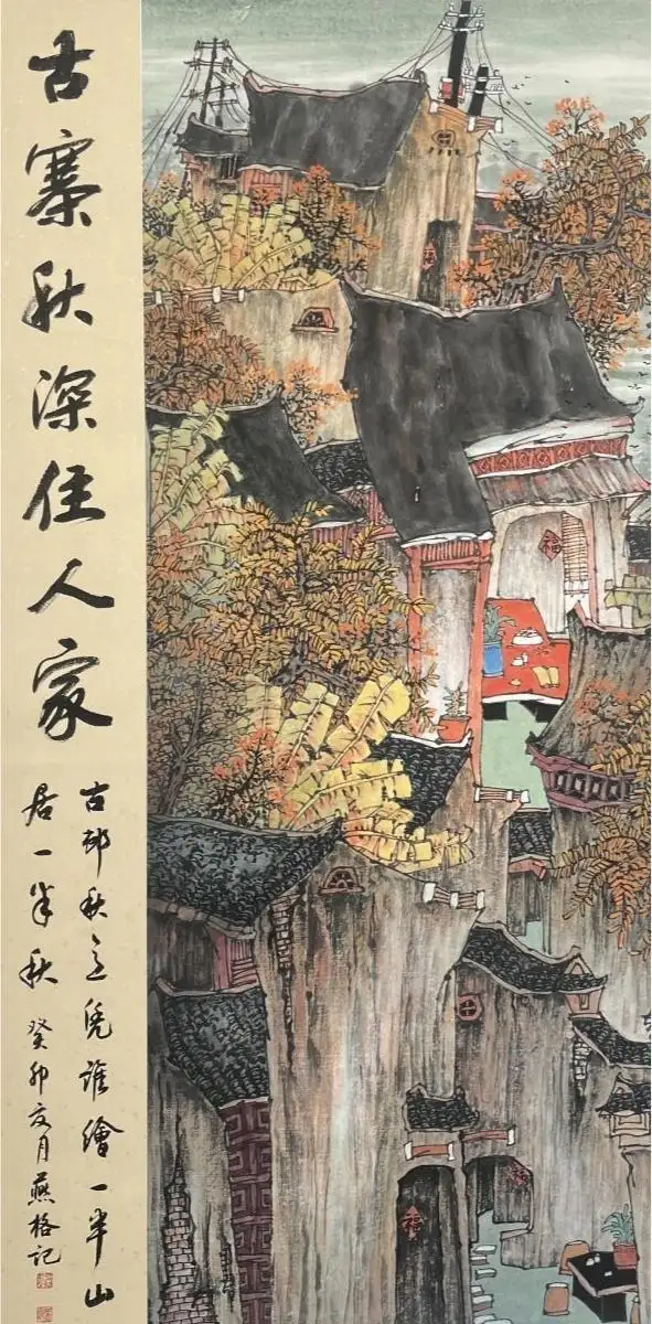 秦燕格老师的写生,是“真功夫”的极致展现。她摒弃闭门造车的创作模式,深入村落实地写生,精准捕老实建筑的细节、秋林的色彩层次、水乡的灵动气韵,让每一幅作品都充满现场感与生命力。同时,她以工笔山水的极致技法,对画面进行深度打磨:线条刚劲有力,精准勾勒建筑肌理;色彩层次丰富,晕染出村落的秋意与温度;构图开合有度,将村落的错落之美与山水的悠远意境完美融合,实现了写生的“真”与工笔的“精”的完美统一,尽显其专业高度与艺术造诣。