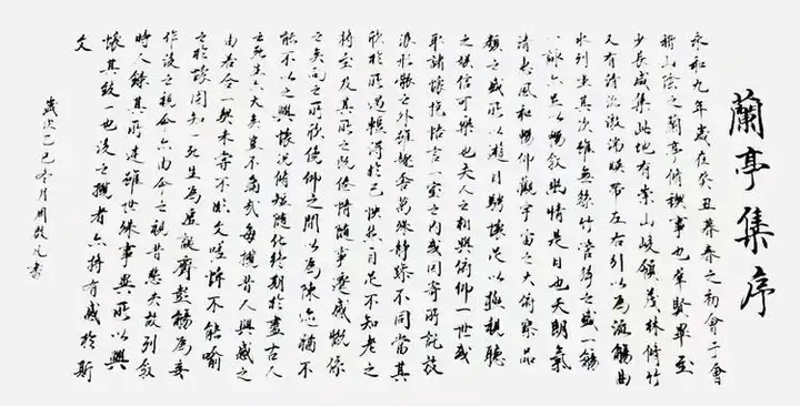 行书:《兰亭序》手卷、自作诗《鄱湖抒怀》扇面。