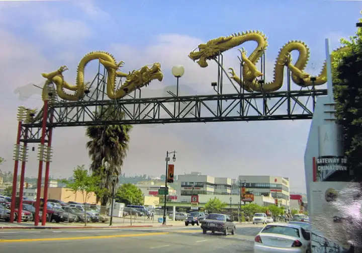 洛杉矶中国城,龙的造型以郝众声画的龙为原型